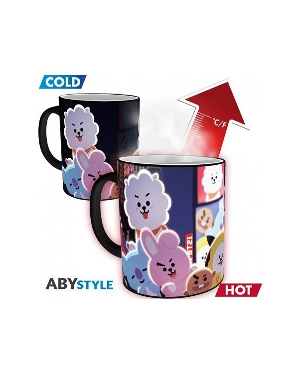 Se trata de una taza de cerámica térmica en la que podemos ver a todos los personajes de BT21 y por sorpresa cuando le añades un liquido caliente se encuentran en Nueva York. Una genial y divertida taza que debido a los materiales con la que esta confeccionada no es apta para su uso en el lavavajillas ni el microondas.