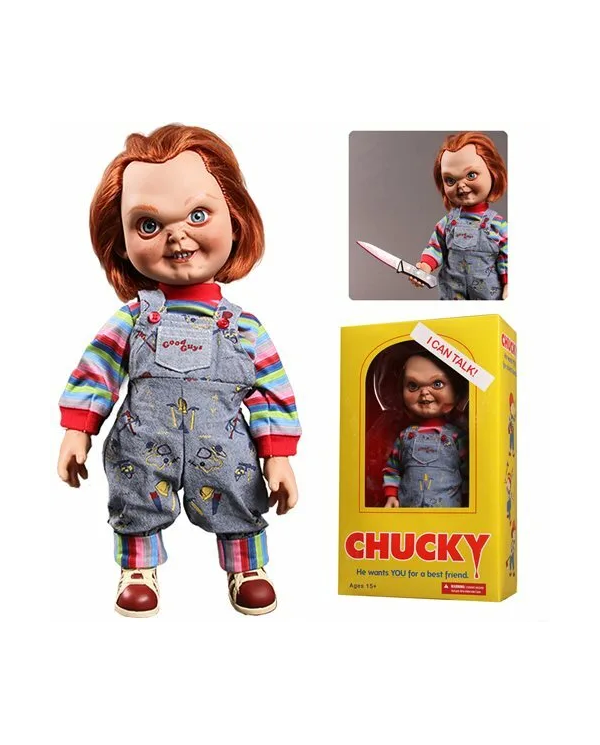 Y para que la replica sea fiel 100% al de la película te viene con la misma caja con la que se vende en las famosas películas de terror. Un muñeco que encantara a todo fan de la saga de terror de este espeluznante muñeco y que es ideal para asustar a las visitas.